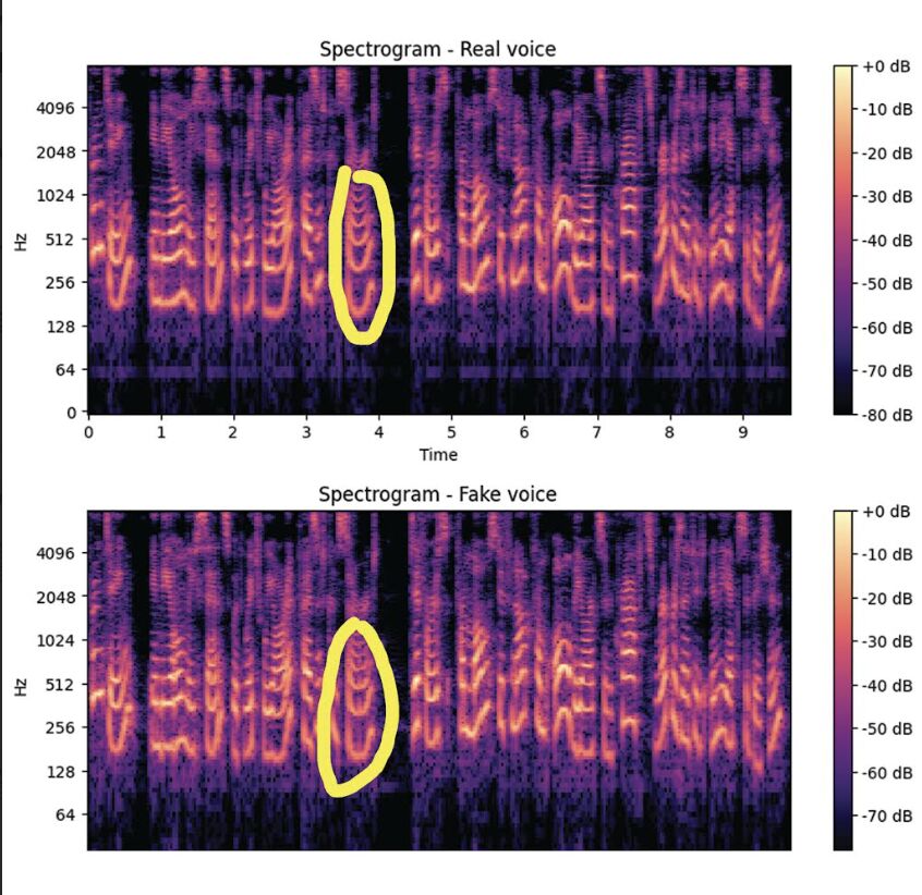 🔊He took several real and synthetic voices, used Python and Librosa to extract audio features (MFCC, spectrum, pitch, etc.), and compared spectrograms and pitch contours.